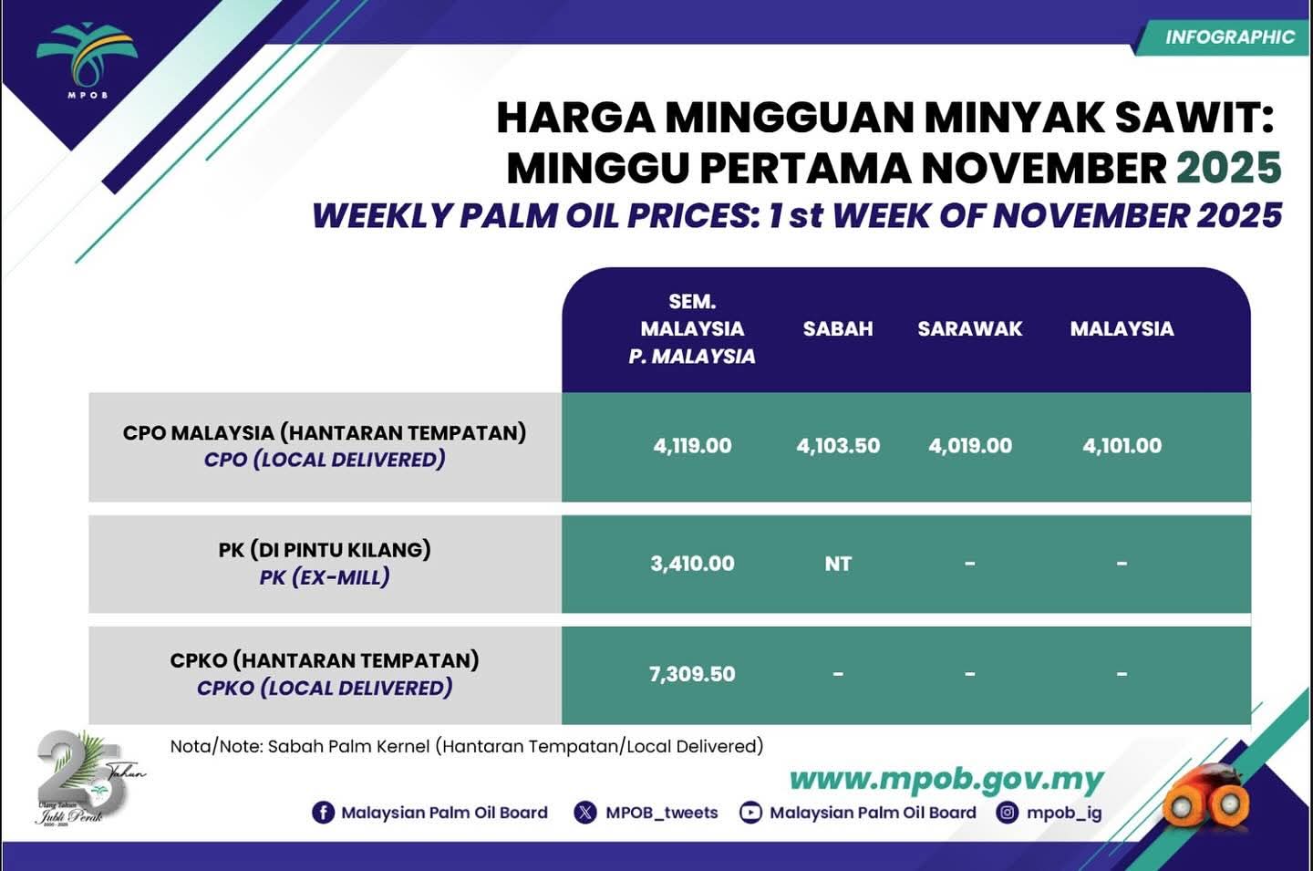 • HARGA MINGGUAN MINYAK SAWIT MINGGU 4, NOVEMBER 2025