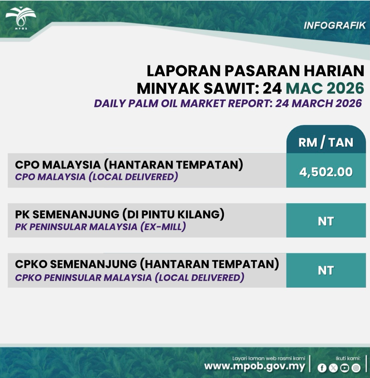 24 MAC 2026: LAPORAN PASARAN HARIAN MINYAK SAWIT