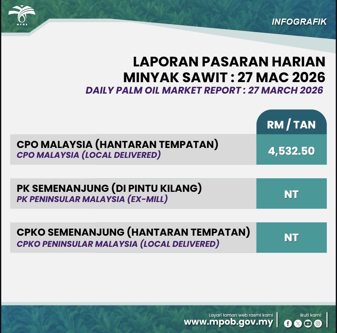 27 MAC 2026: LAPORAN PASARAN HARIAN MINYAK SAWIT