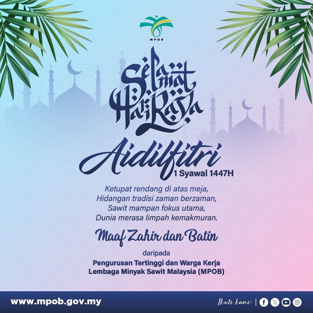 🤝 Meski raya tak dapat berjabat dan raga tak dapat bertatap, kami di MPOB mengucapkan Salam Aidilfiri kepada semua rakan-rakan beragama Islam yang menyambut raya pada 1 Syawal ini. ⭐️🌙