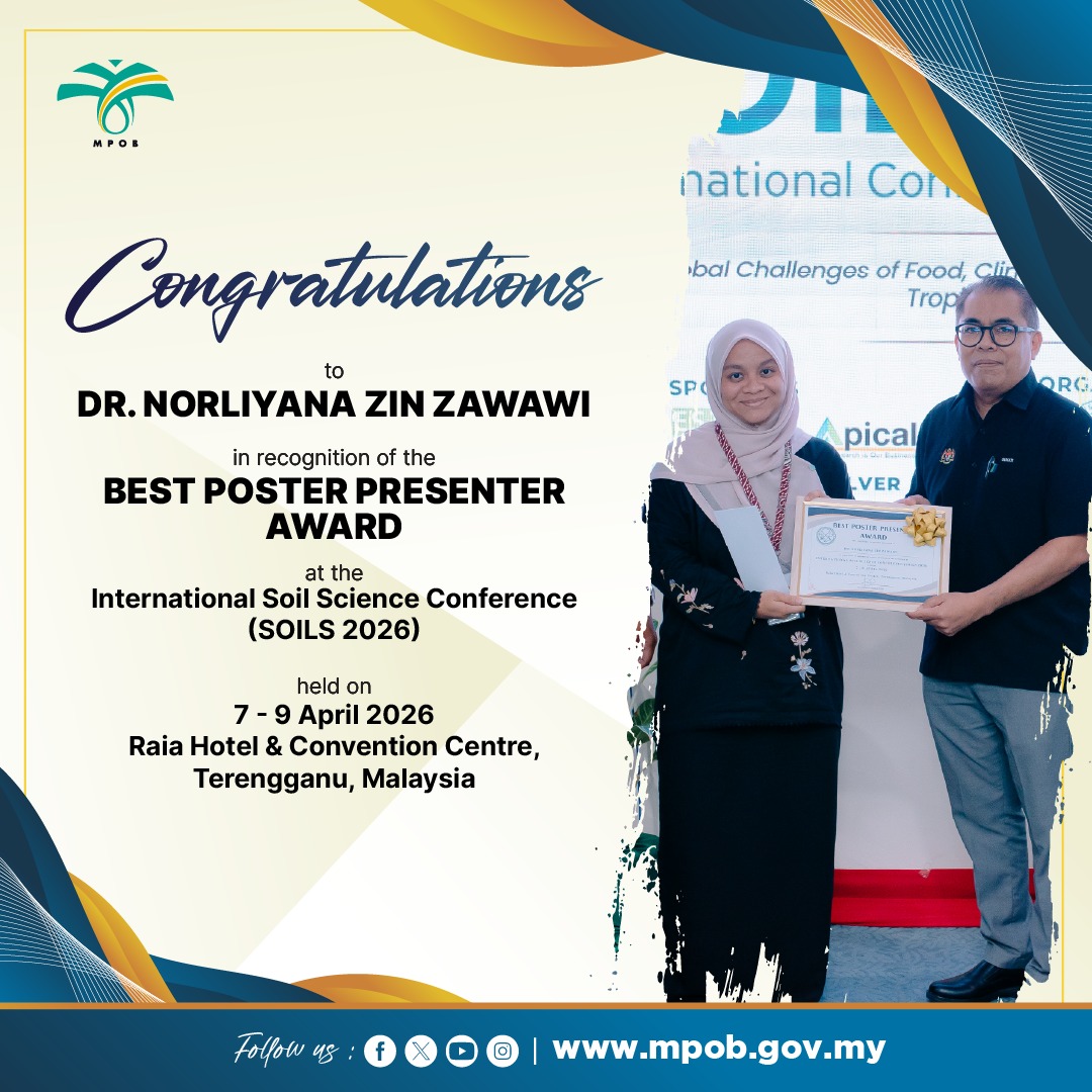 General Greetings Congrats, Dr. Norliyana, for winning Best Poster Presenter at SOILS 2026 last week! By Asyraf Hüseyin / April 14, 2026 About The Author Asyraf Hüseyin See author's posts You may also like HARI AUTISME SEDUNIA 2026 By Asyraf Hüseyin / April 6, 2026 SELAMAT ULANG TAHUN RTM KE-80 By Asyraf Hüseyin / April 6, 2026 Happy International Bird Day! By Asyraf Hüseyin / April 6, 2026 TAHNIAH SPM 2025 ! By Asyraf Hüseyin / April 6, 2026 INTERNATIONAL ZERO WASTE By Asyraf Hüseyin / April 6, 2026 Post navigation Previous 13 April 2026: HARGA PANDUAN HARIAN TBS MPOB MENGIKUT WILAYAH (DI PINTU KILANG)Next 10 APRIL 2026: LAPORAN PASARAN HARIAN MINYAK SAWIT