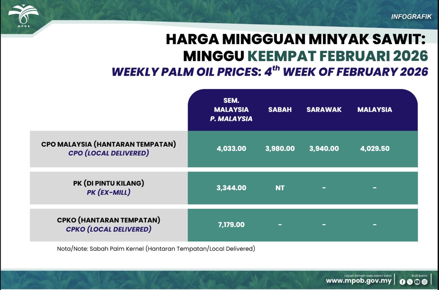 HARGA MINGGUAN MINYAK SAWIT: MINGGU- 4 FEBRUARI 2026