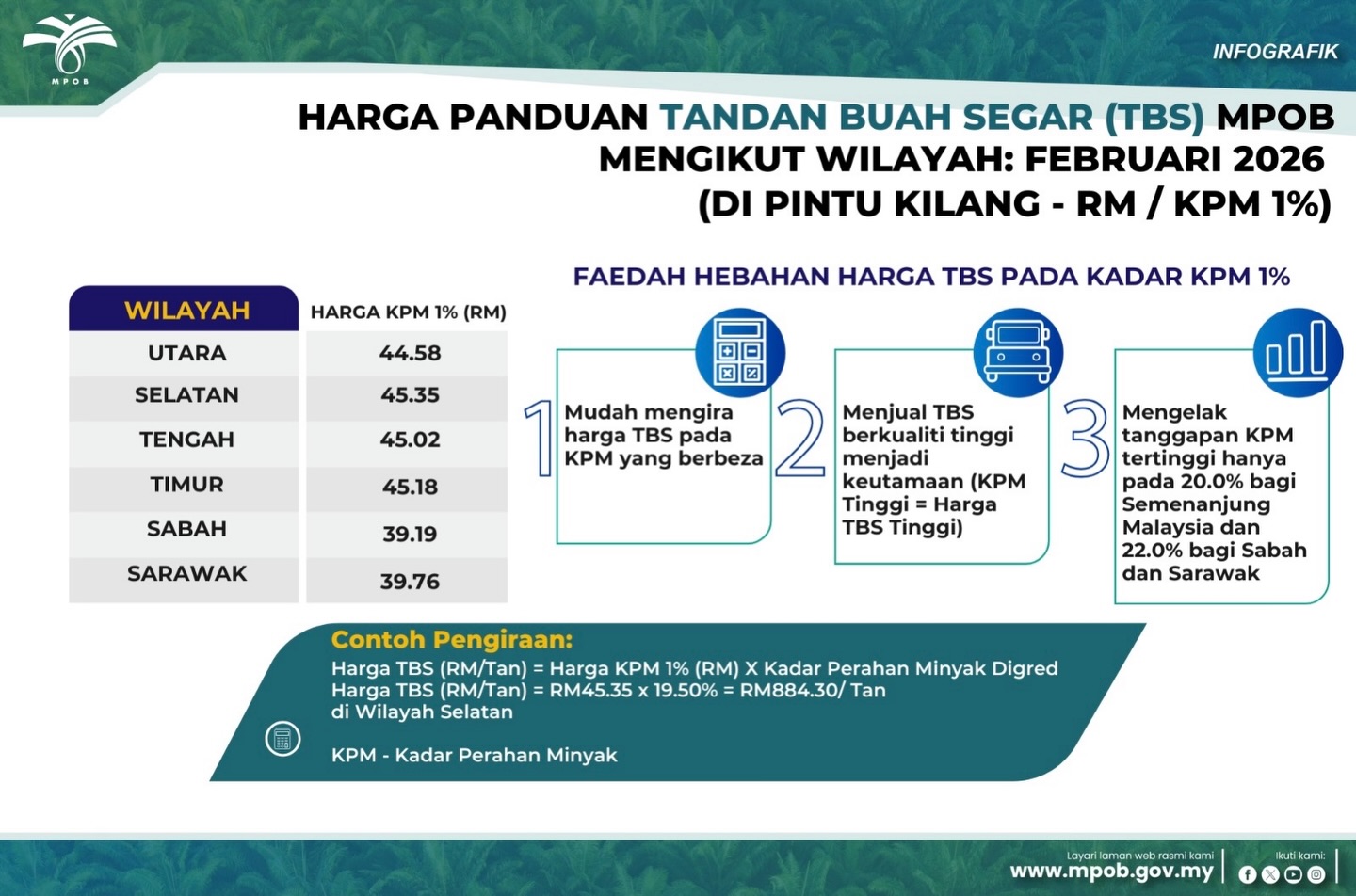 2 JANUARI 2026: HARGA PANDUAN HARIAN TBS MPOB MENGIKUT WILAYAH (DI PINTU KILANG)