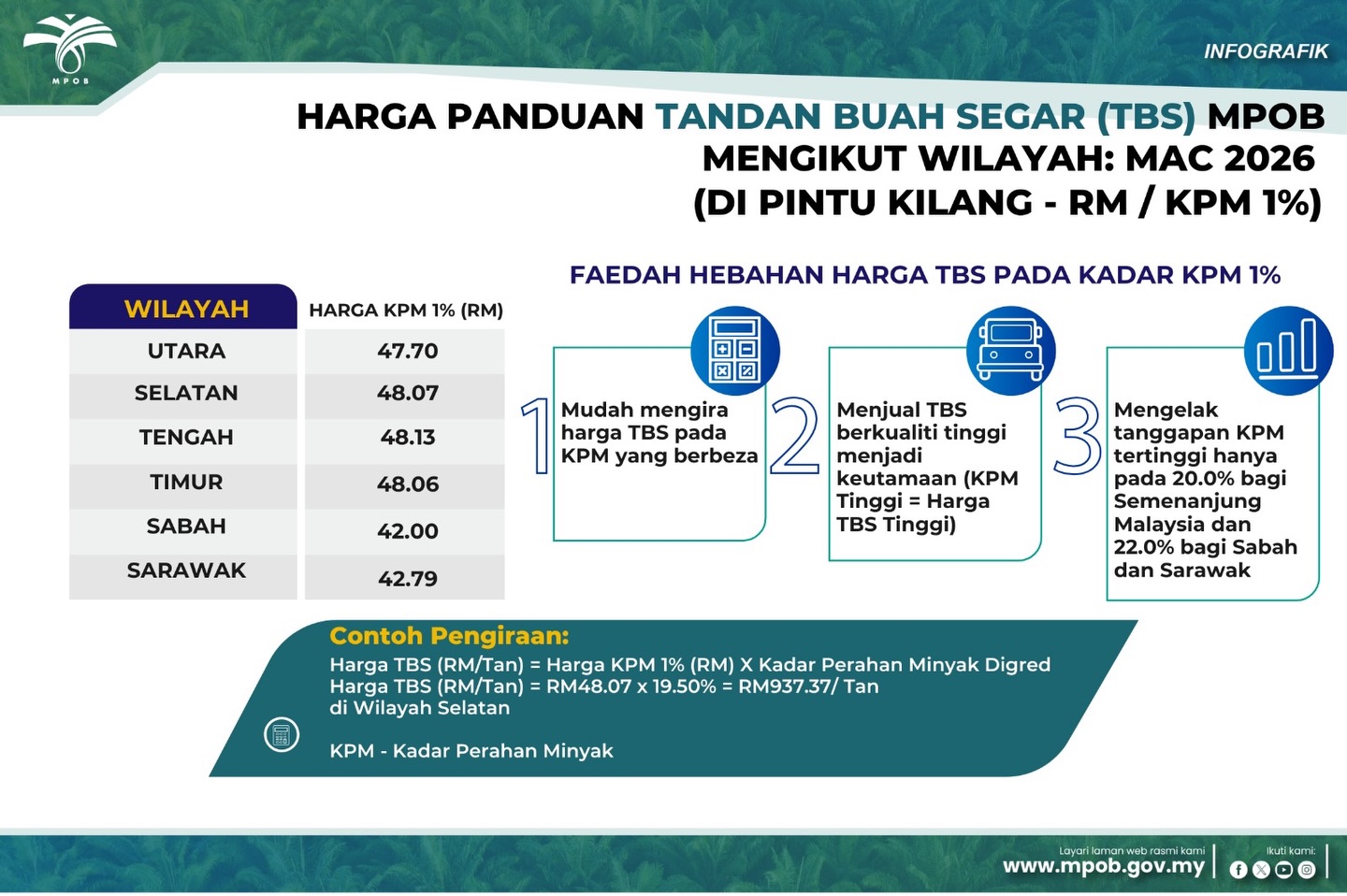 13 April 2026: HARGA PANDUAN HARIAN TBS MPOB MENGIKUT WILAYAH (DI PINTU KILANG)