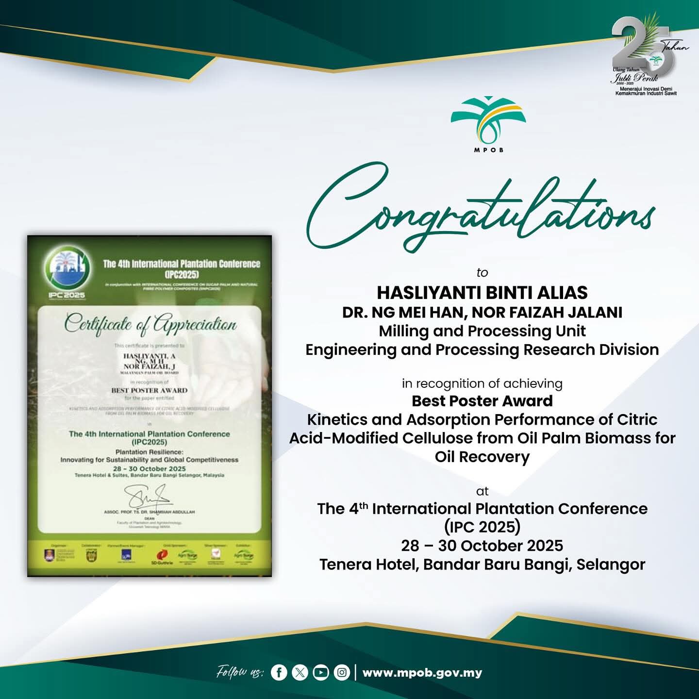 Homepage: www.mpob.gov.my